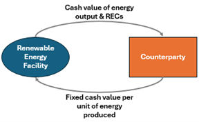 Physical PPAs may also include the exchange of RECs associated with renewable energy production, which businesses can use to make representations regarding sustainable business practices.